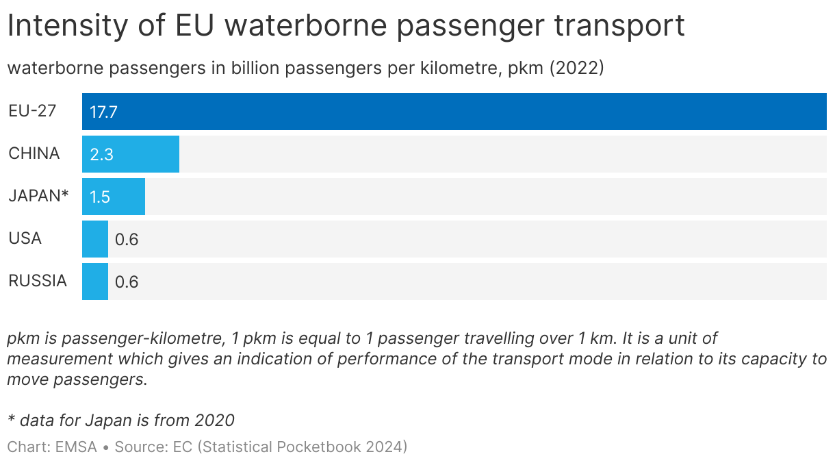 waterborne passengers in billion passengers per kilometre, pkm (2022)