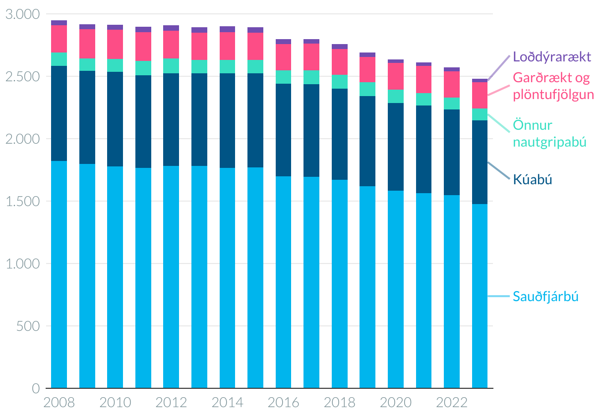 Fjöldi rekstraraðila í fimm greinum landbúnaðar 2008-2023