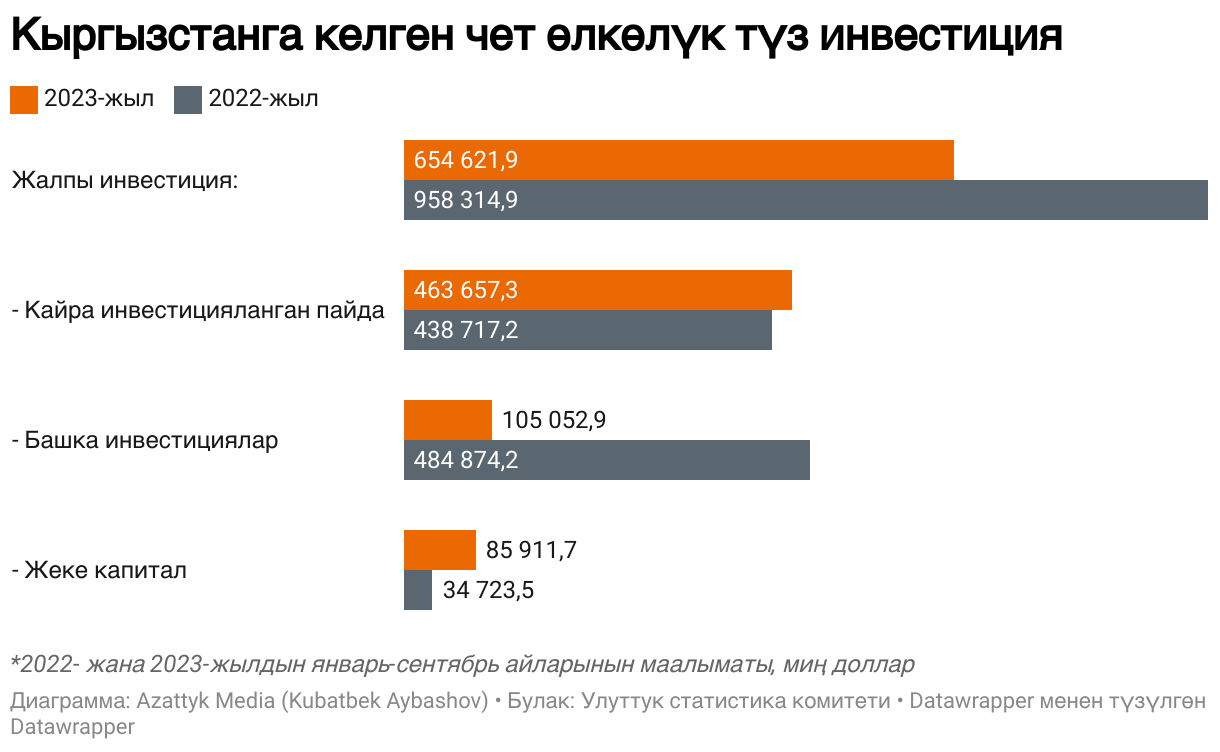Кыргызстанга келген чет өлкөлүк түз инвестиция