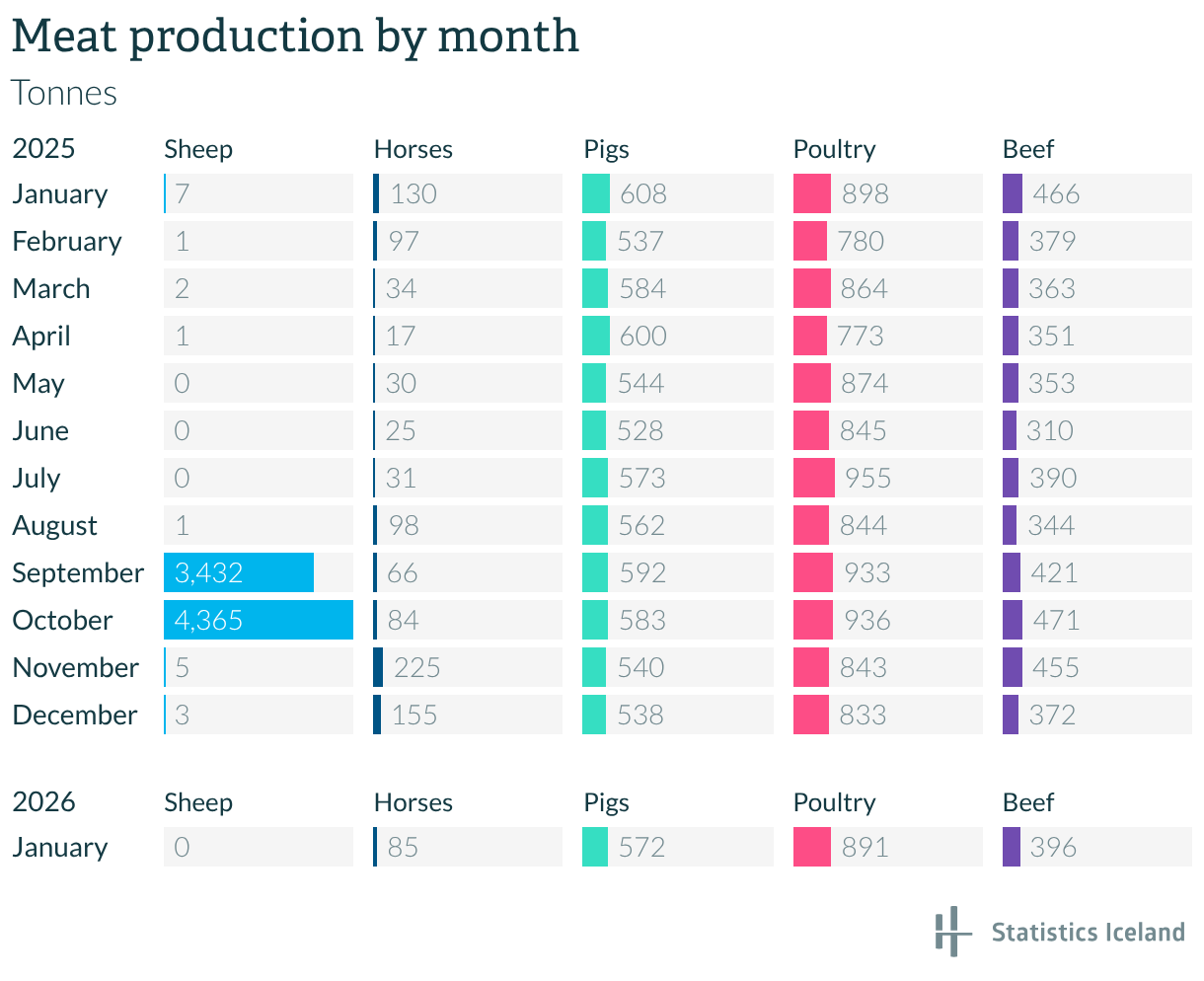 Meat production by month