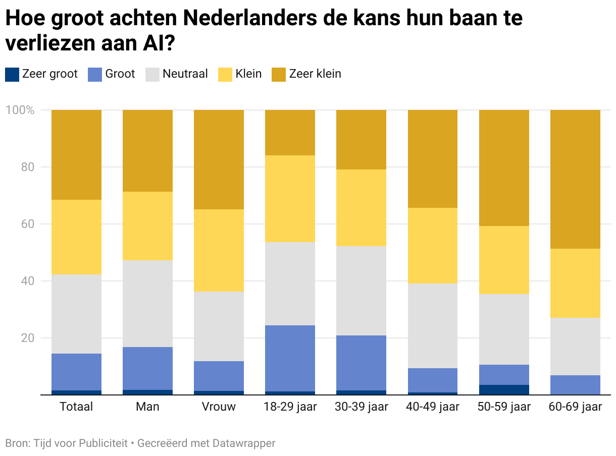 Hoe groot achten Nederlanders de kans hun baan te verliezen aan AI?