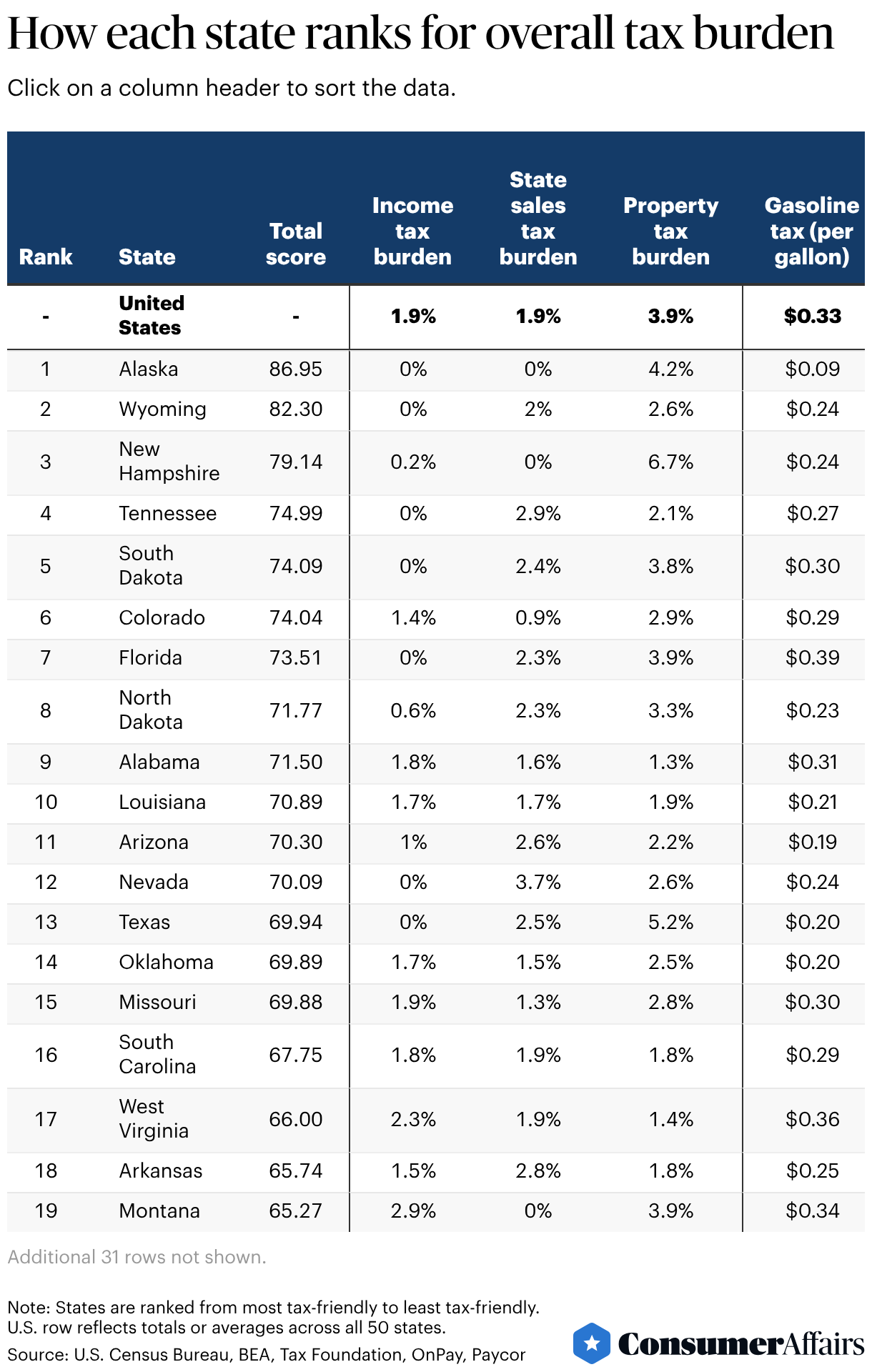 Click on a column header to sort the data.