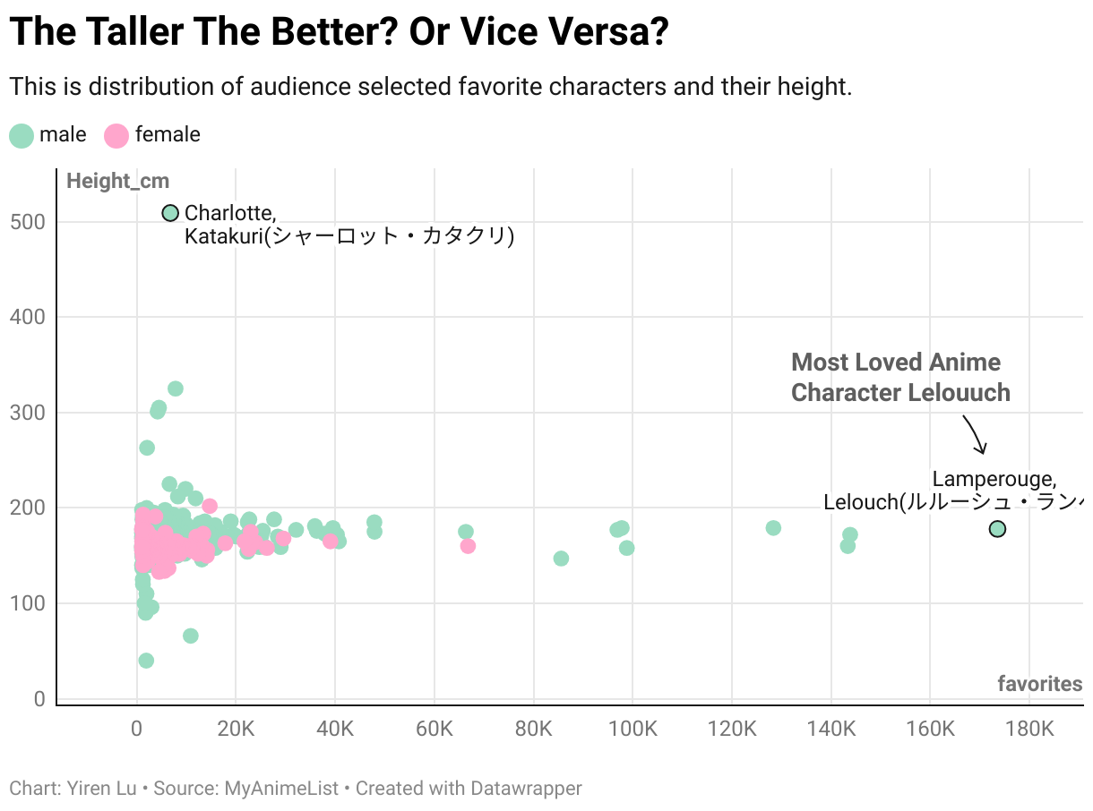 This is distribution of audience selected favorite characters and their height.