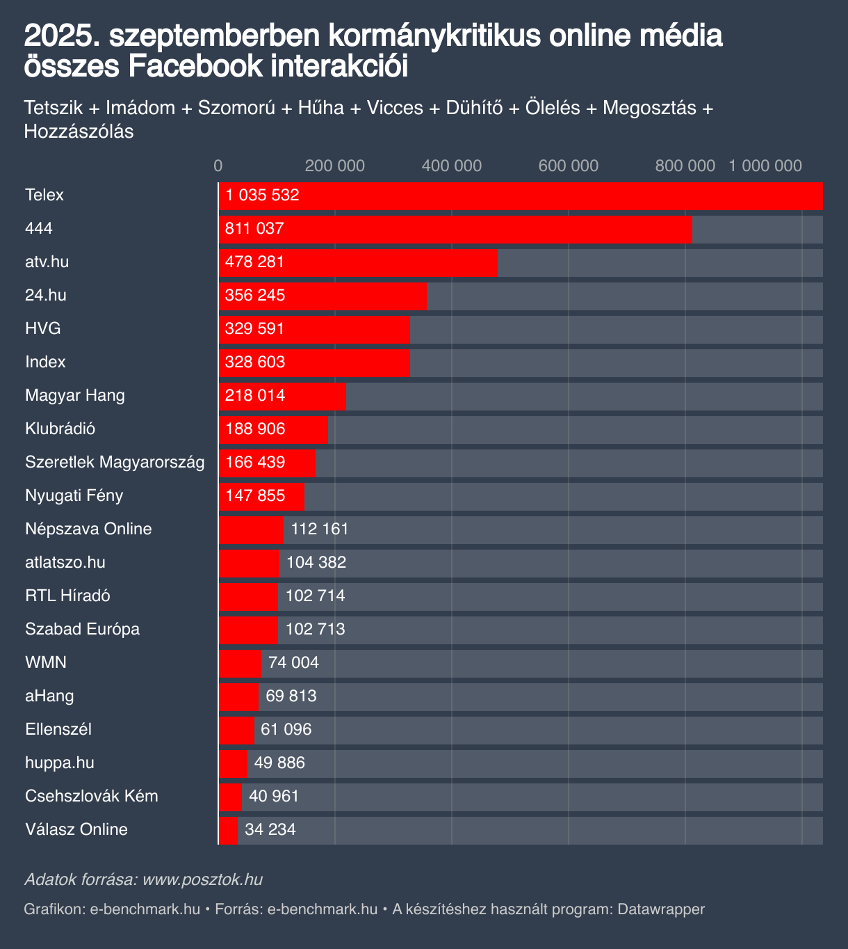 2025. szeptemberben kormánykritikus online média összes Facebook interakciói