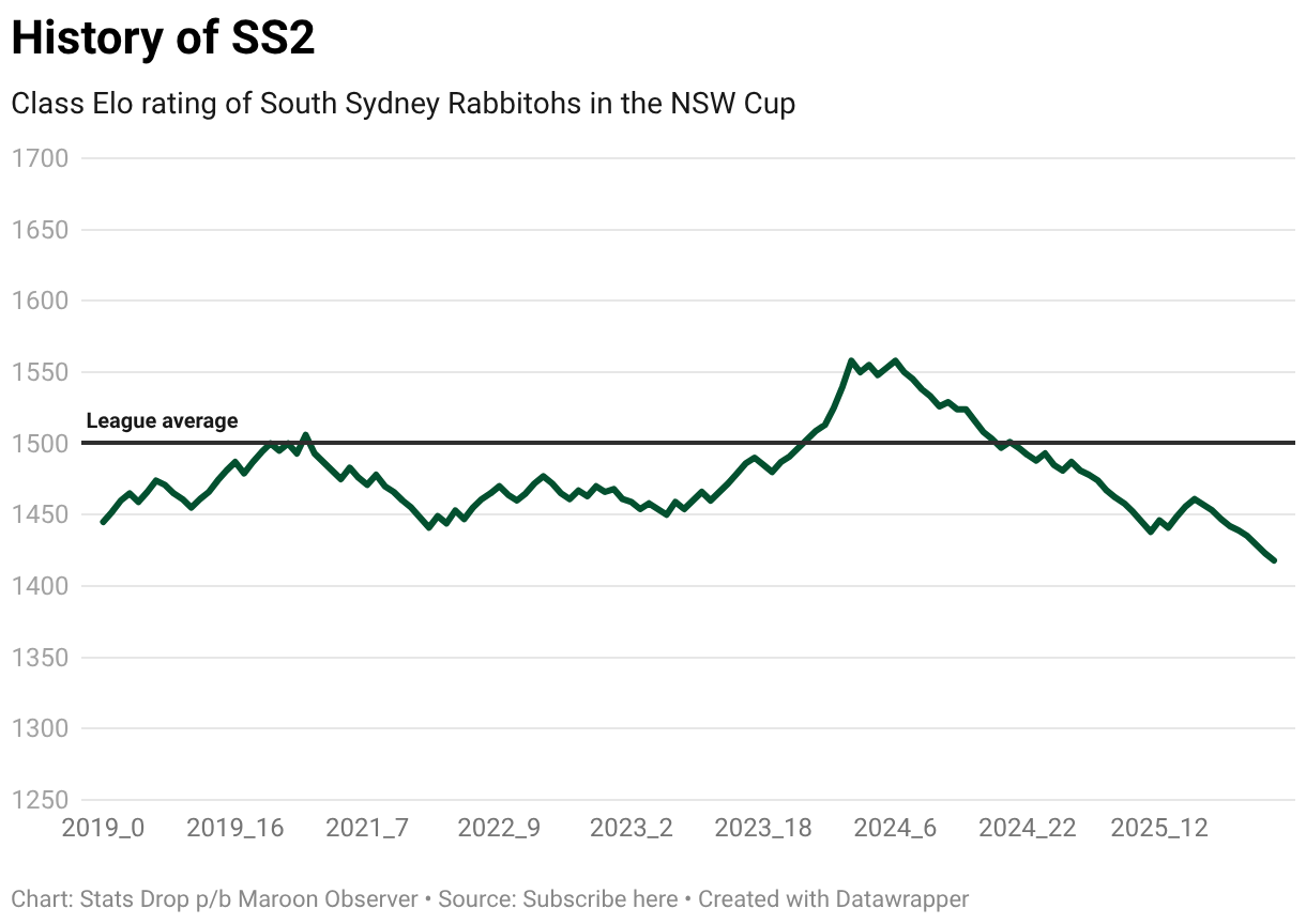 Class Elo rating of South Sydney Rabbitohs in the NSW Cup