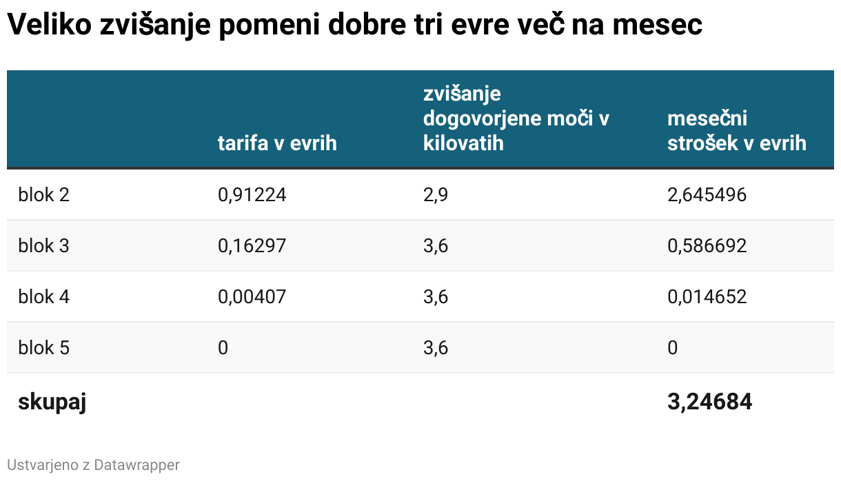 Veliko zvišanje pomeni dobre tri evre več na mesec