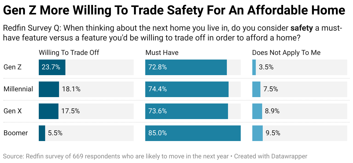 Redfin Survey Q: When thinking about the next home you live in, do you consider safety a must-have feature versus a feature you'd be willing to trade off in order to afford a home?