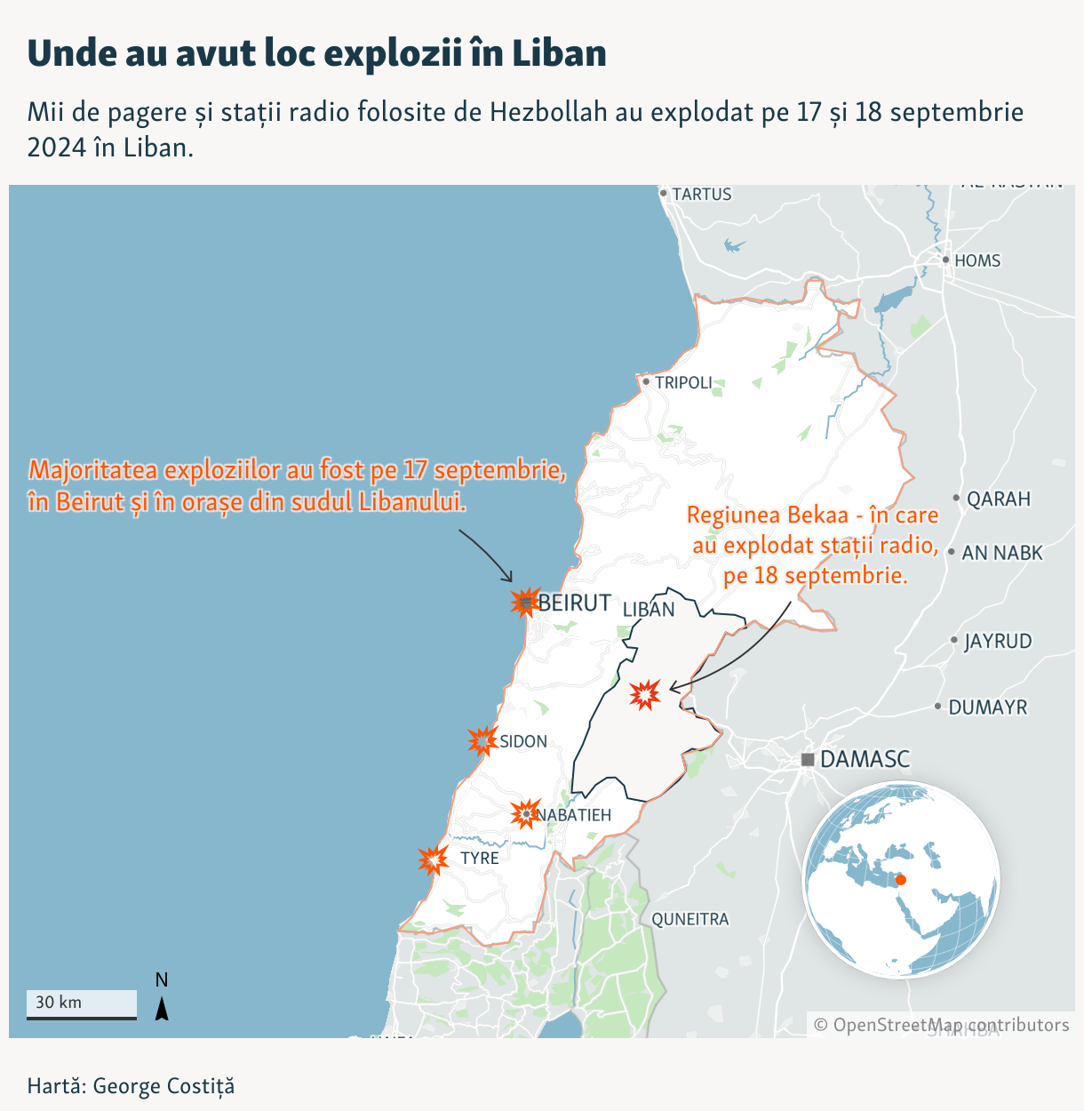 Mii de pagere și stații radio folosite de Hezbollah au explodat pe 17 și 18 septembrie 2024 în Liban.