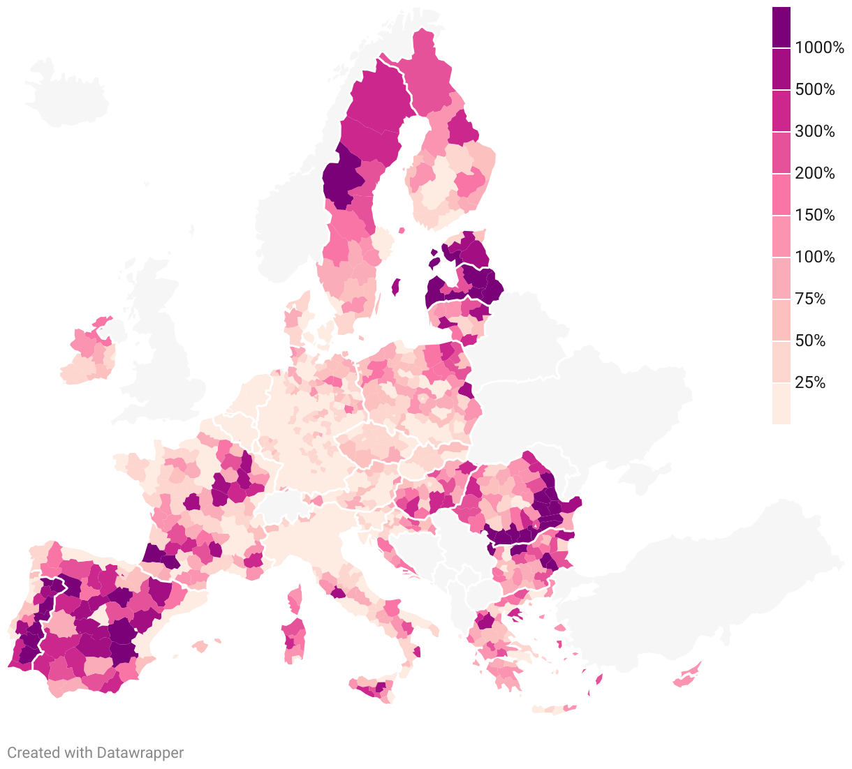 As a result of the comparison of the energy demand, and the current and potential renewable energy production in EU NUTS 3 regions.