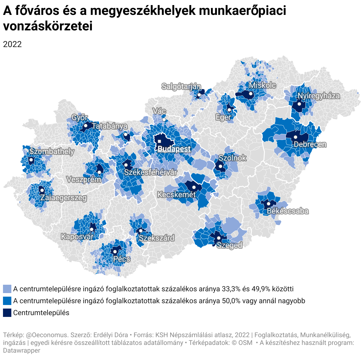 A főváros és a megyeszékhelyek munkaerőpiaci vonzáskörzetei