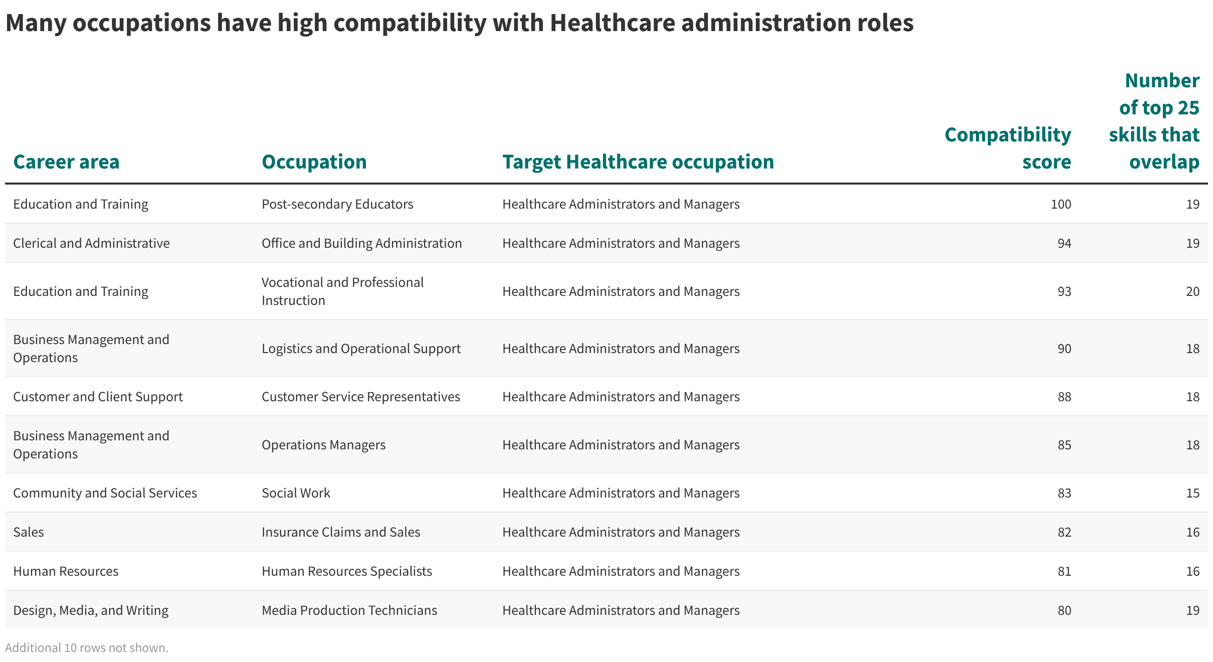 Many occupations have high compatibility with Healthcare administration roles