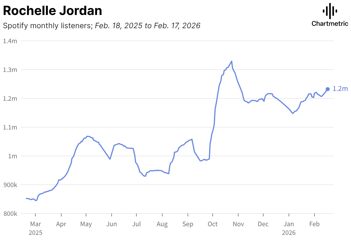 Spotify monthly listeners; Feb. 18, 2025 to Feb. 17, 2026