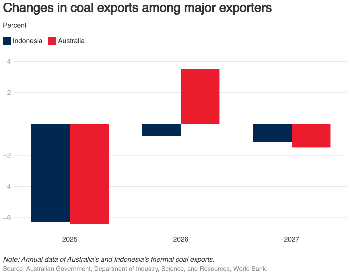 Changes in coal exports among major exporters