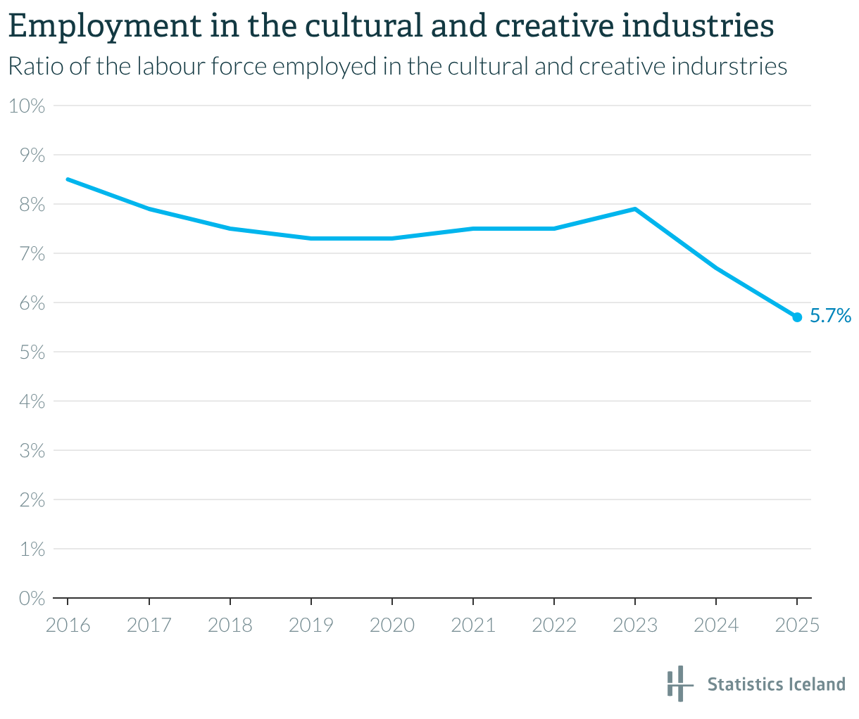 Ratio of the labour force employed in the cultural and creative indurstries