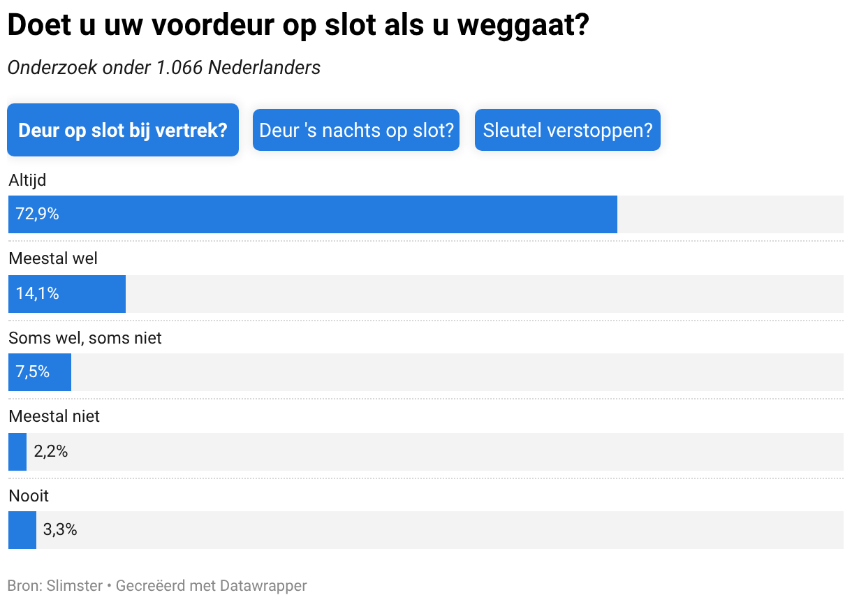 Onderzoek onder 1.066 Nederlanders Deur op slot bij vertrek? Deur 's nachts op slot? Sleutel verstoppen?