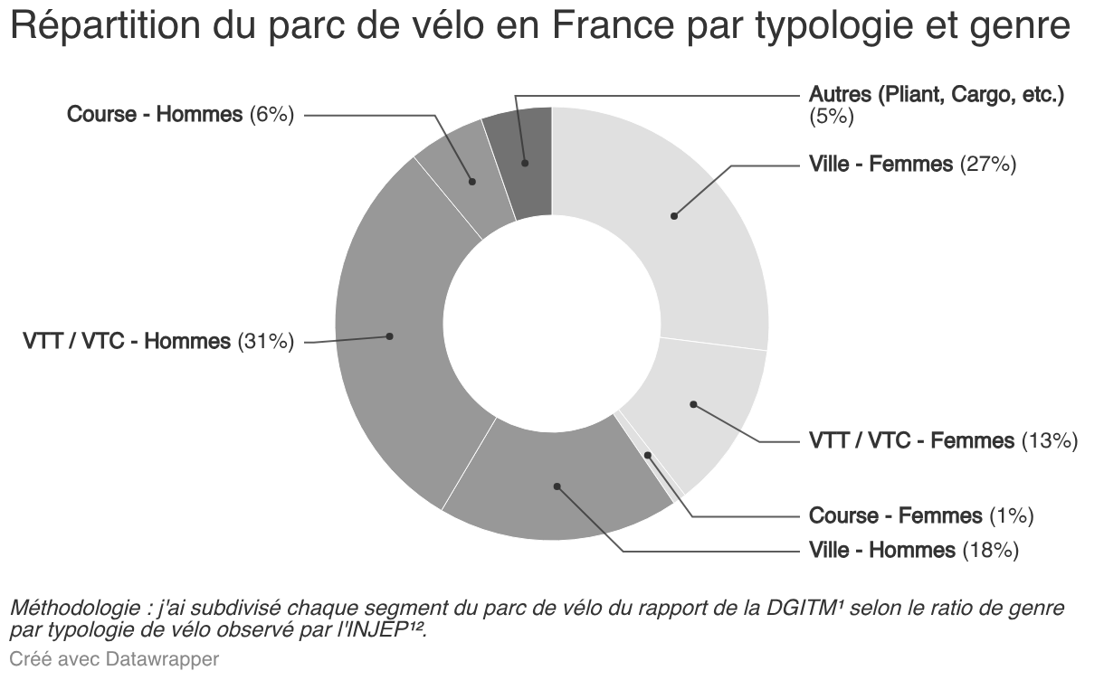 Répartition du parc de vélo en France par typologie et genre
