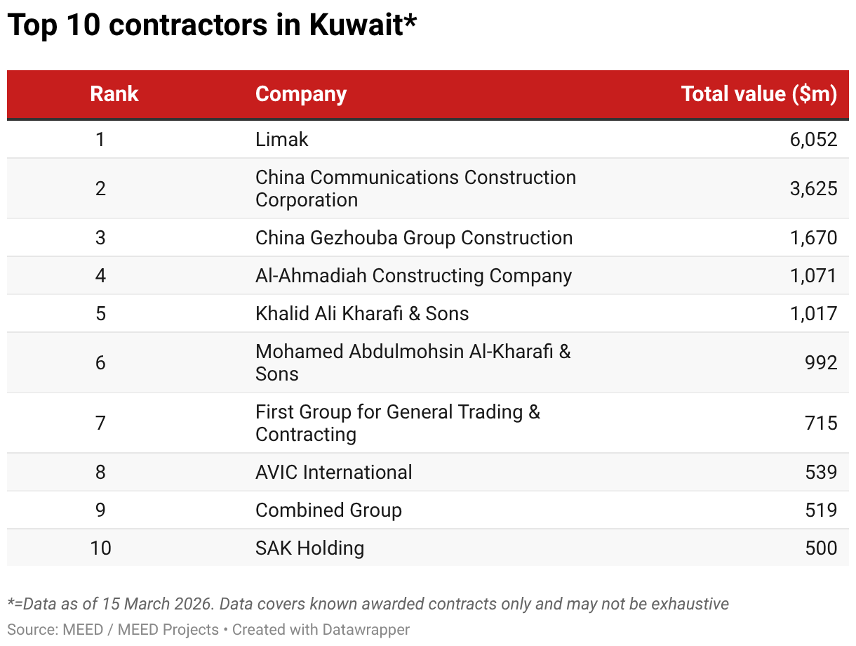 Top 10 contractors in Kuwait*