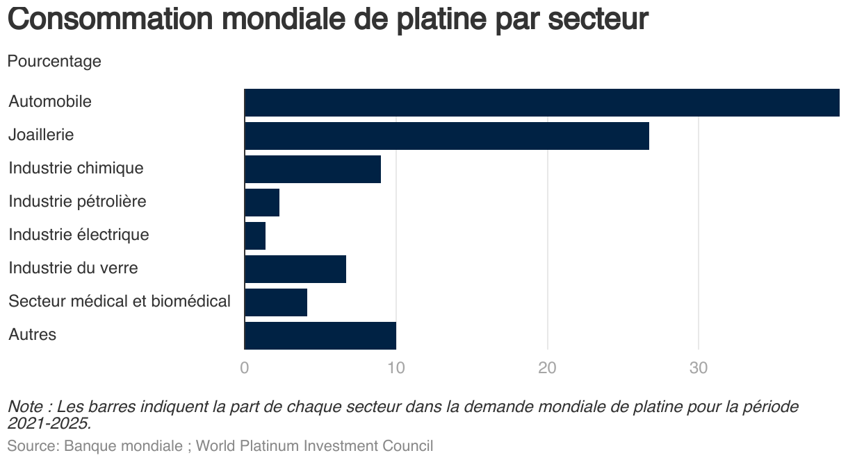 Consommation mondiale de platine par secteur