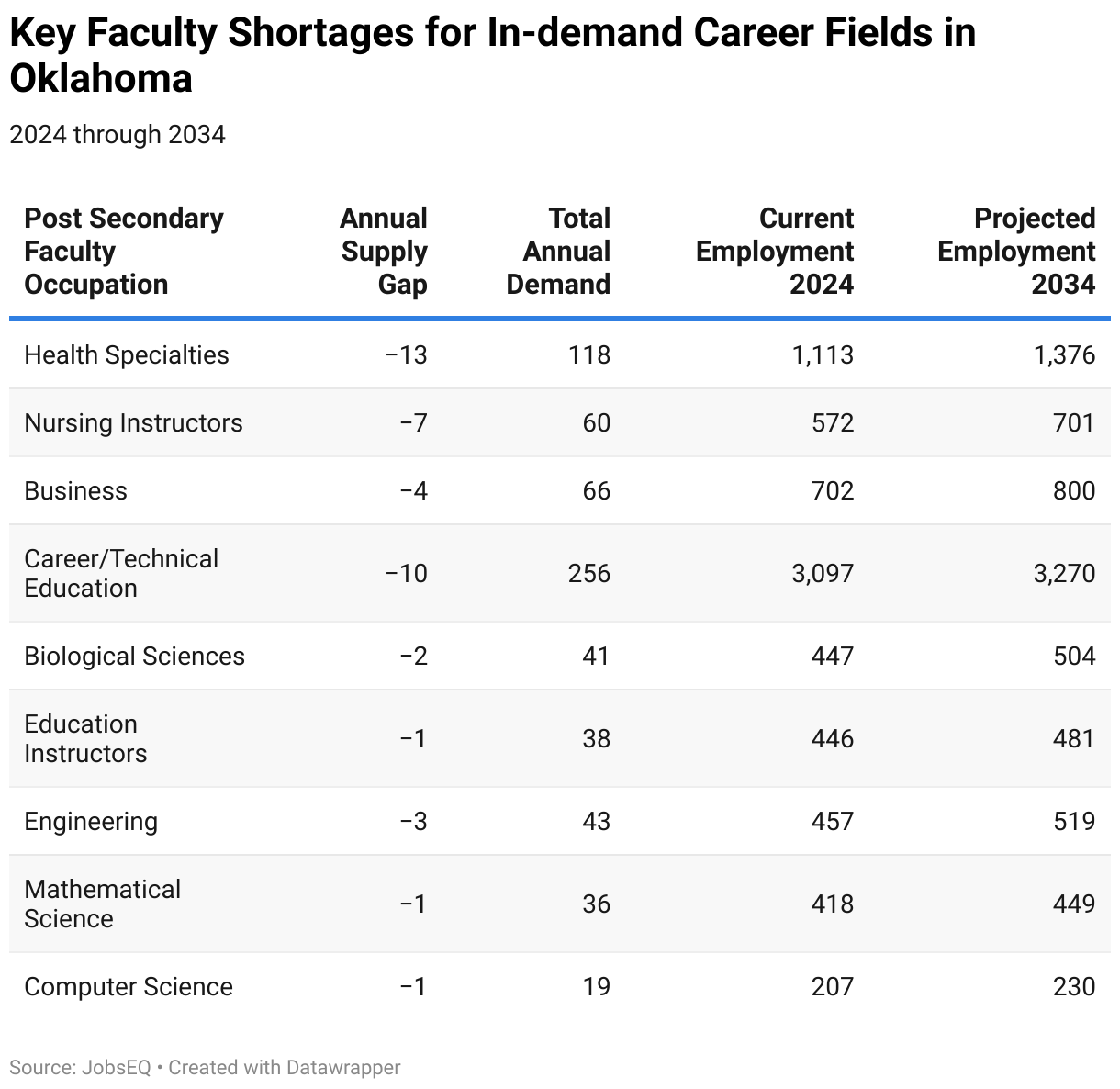 Key Faculty Shortages for In-demand Career Fields in Oklahoma