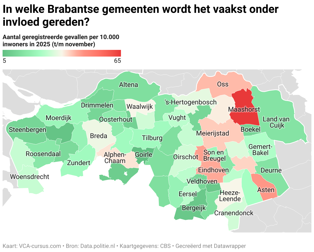 In welke Brabantse gemeenten wordt het vaakst onder invloed gereden?