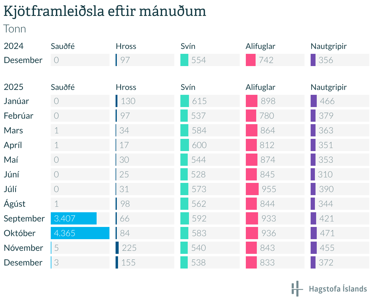 Kjötframleiðsla eftir mánuðum