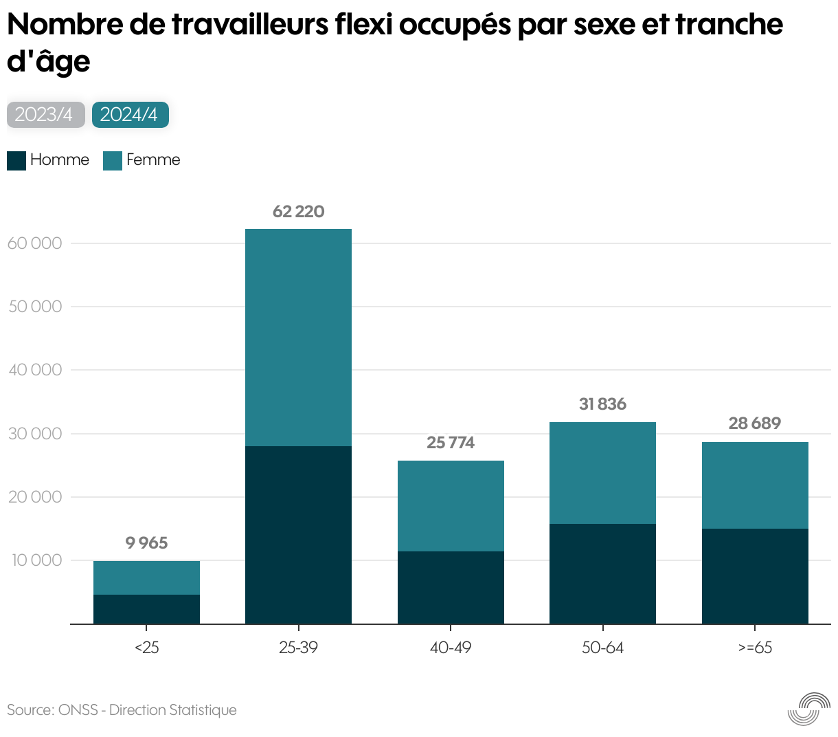 Nombre de travailleurs flexi occupés par sexe et tranche d'âge