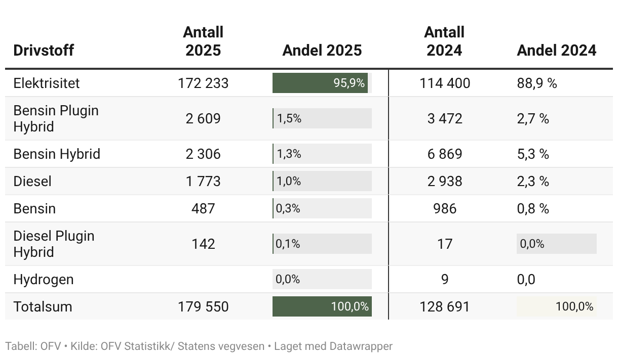 Grafikk: OFVKilde: OFV Statistikk/ Statens vegvesenLast ned dataLast ned bildeLaget med Datawrapper