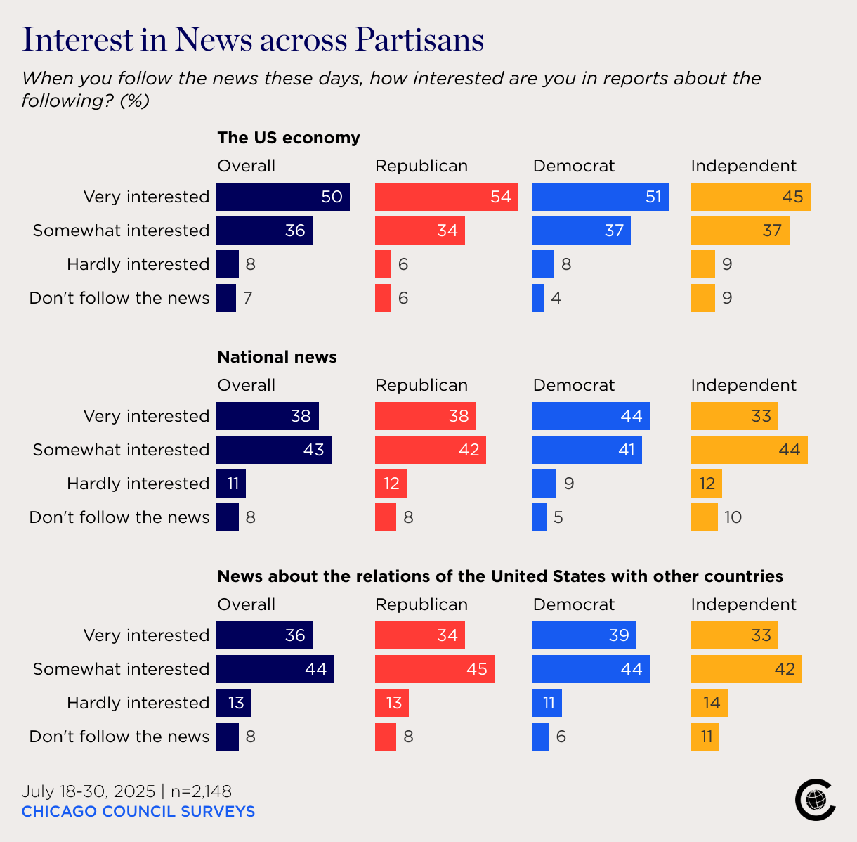 When you follow the news these days, how interested are you in reports about the following? (%)