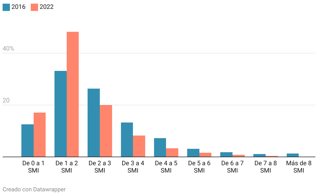Trabajadores en función de su ganancia con respecto al SMI