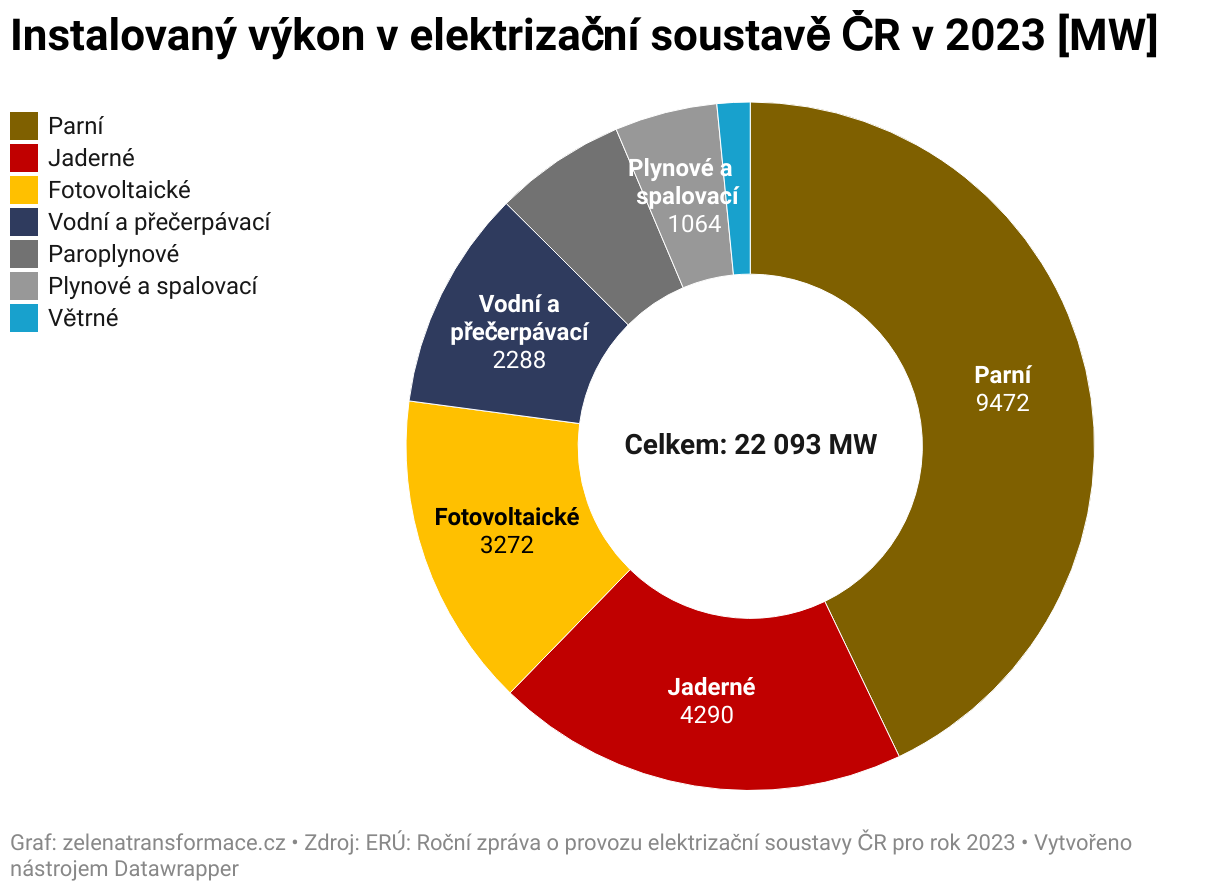 Instalovaný výkon v elektrizační soustavě ČR v 2023 [MW]