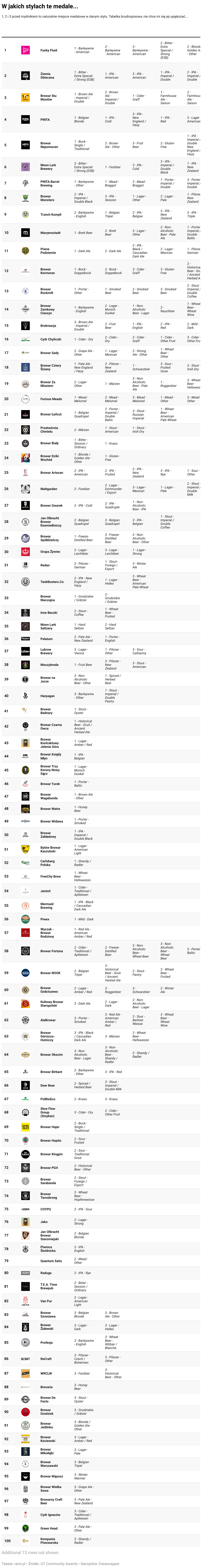 1, 2 i 3 przed myślnikiem to naturalnie miejsce medalowe w danym stylu. Tabelka brudnopisowa, nie chce mi się jej upiększać....
