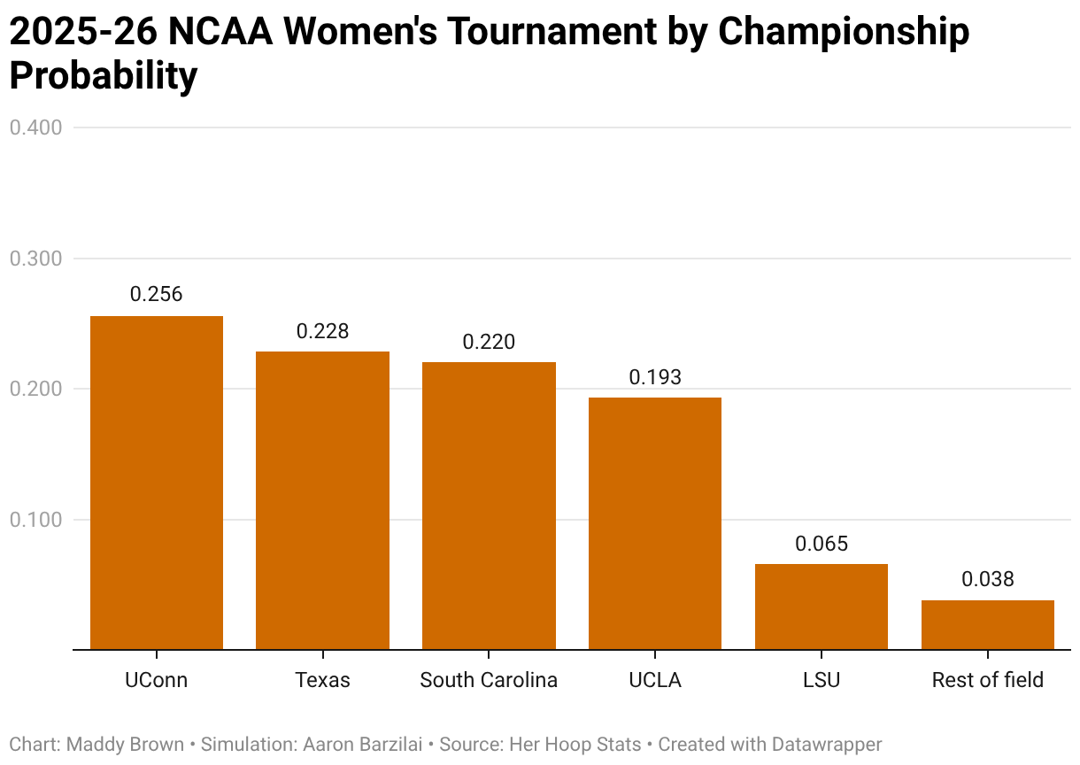 2025-26 NCAA Women's Tournament by Championship Probability