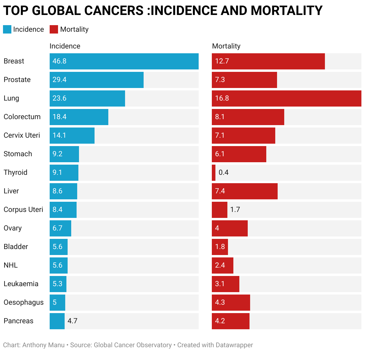 TOP GLOBAL CANCERS :INCIDENCE AND MORTALITY