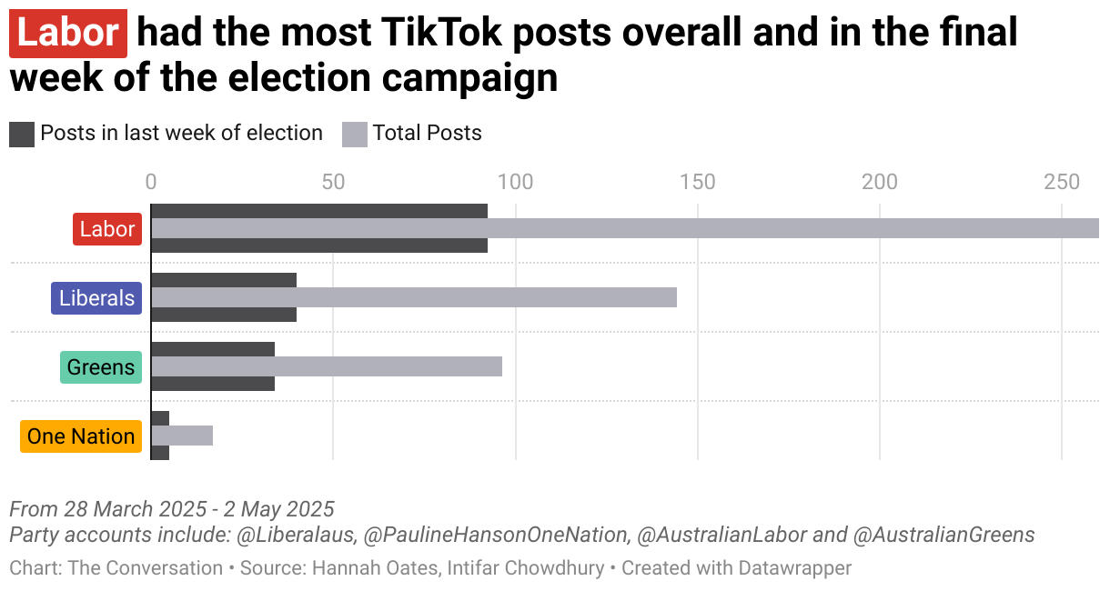 had the most TikTok posts overall and in the final week of the election campaign