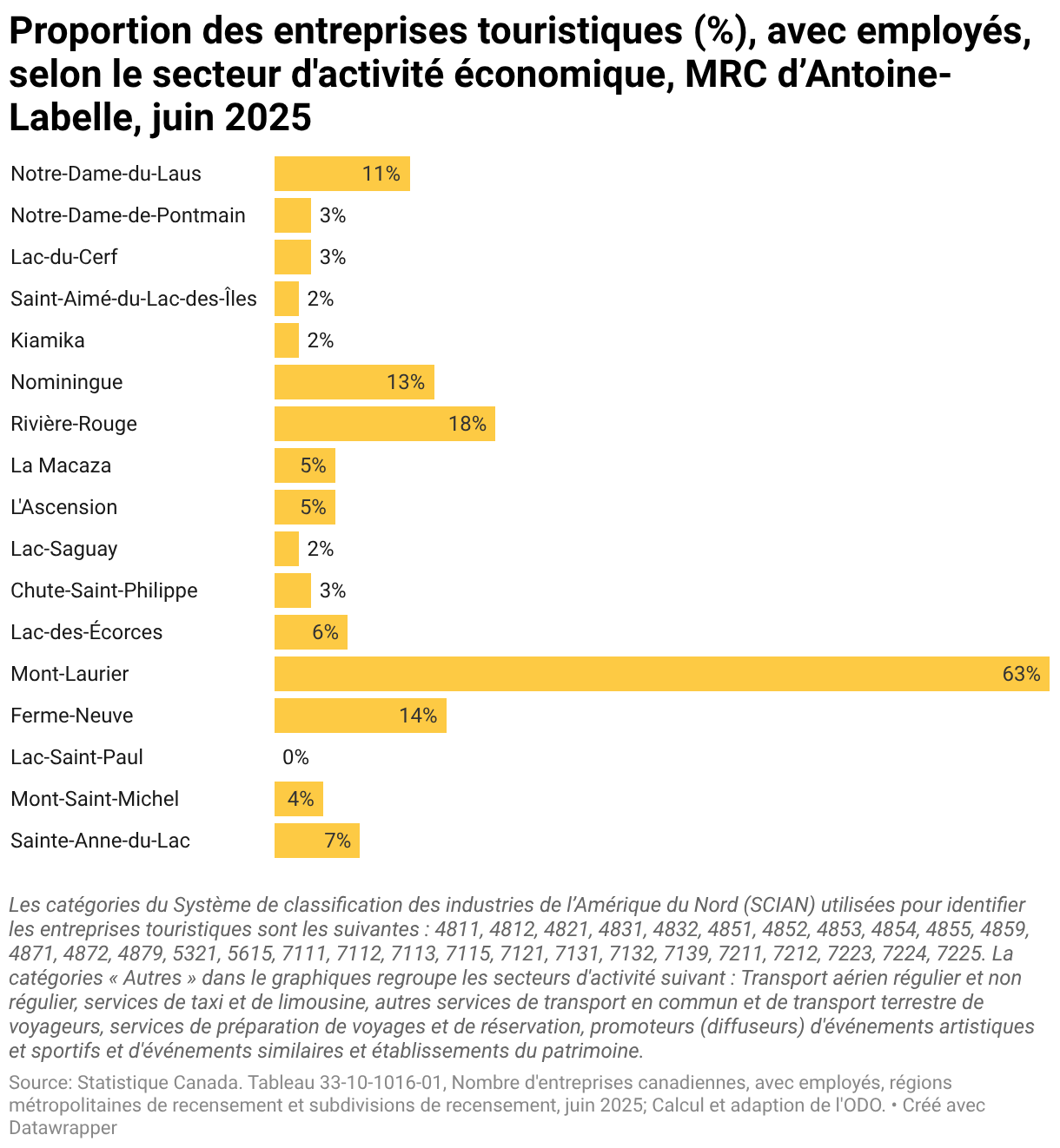 Proportion des entreprises touristiques (%), avec employés, selon le secteur d'activité économique, MRC d’Antoine-Labelle, juin 2025