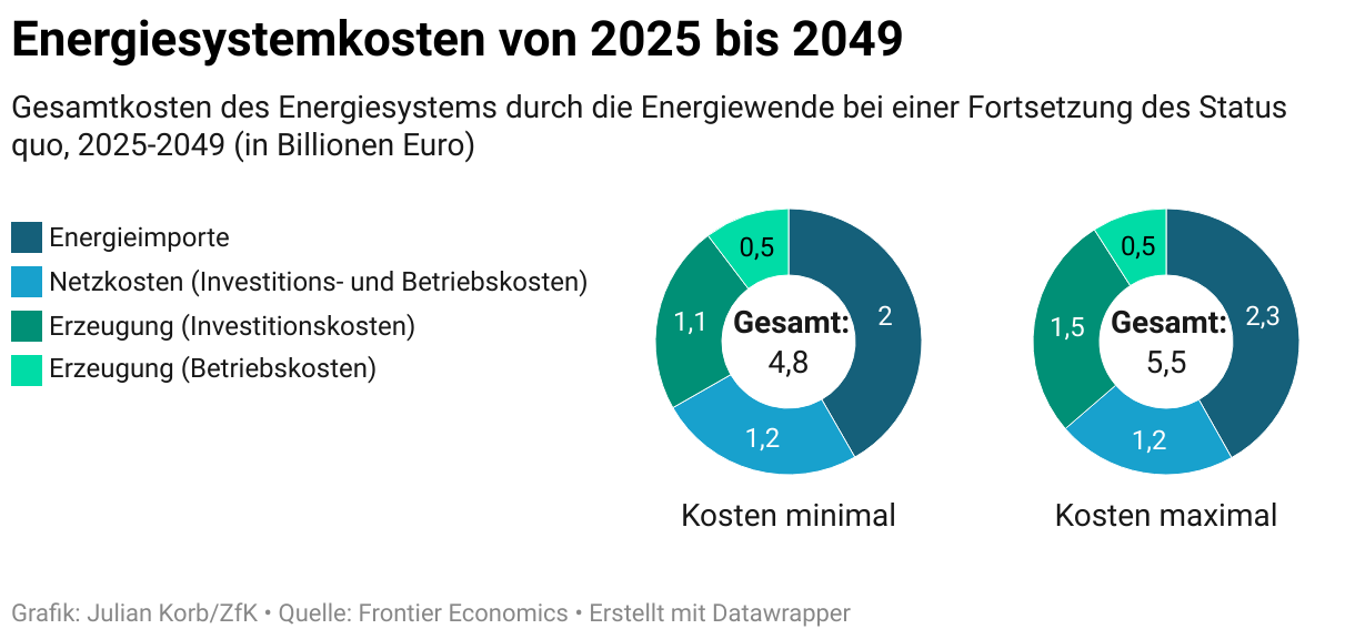 Gesamtkosten des Energiesystems durch die Energiewende bei einer Fortsetzung des Status quo, 2025-2049 (in Billionen Euro)