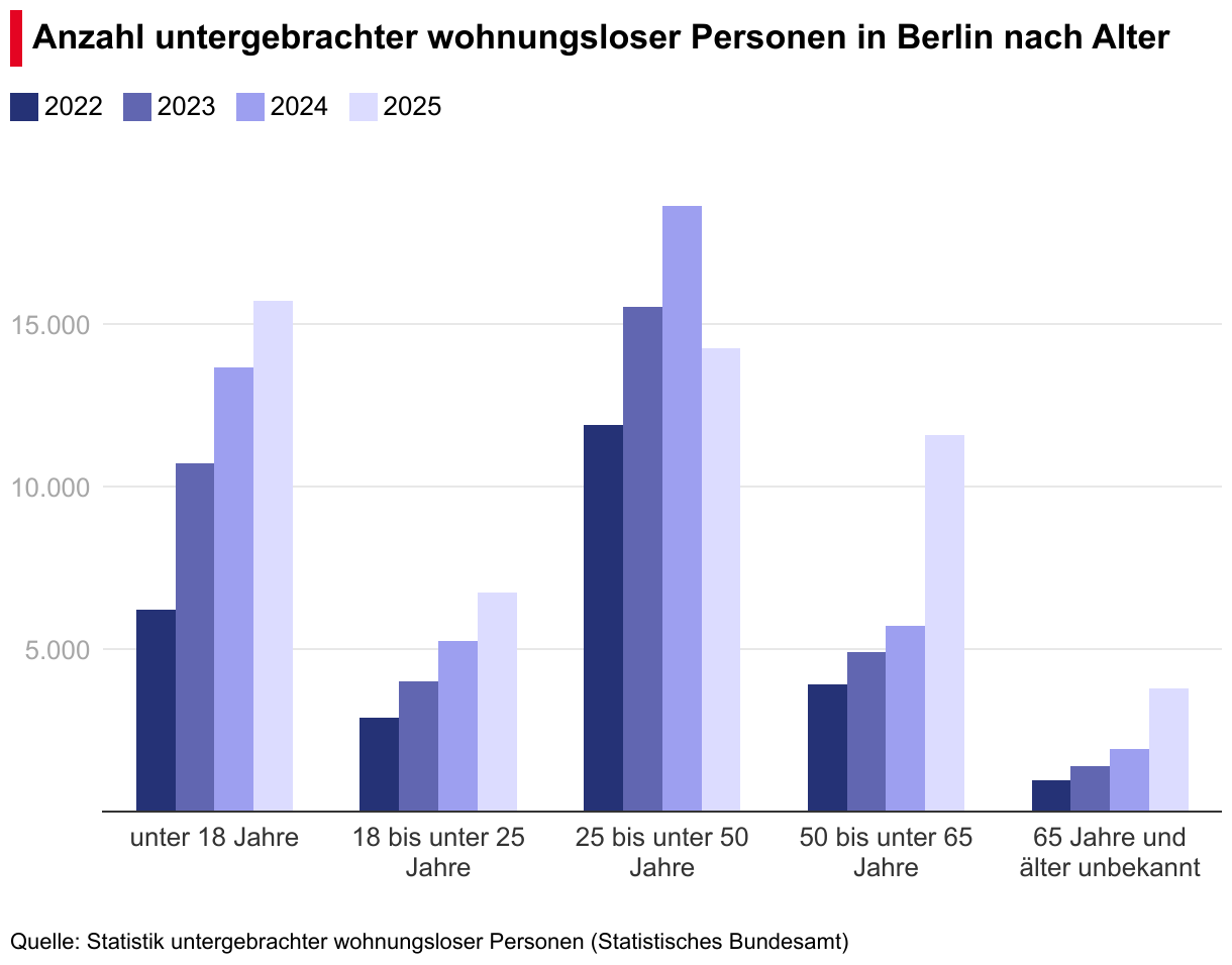 Anzahl untergebrachter wohnungsloser Personen in Berlin nach Alter