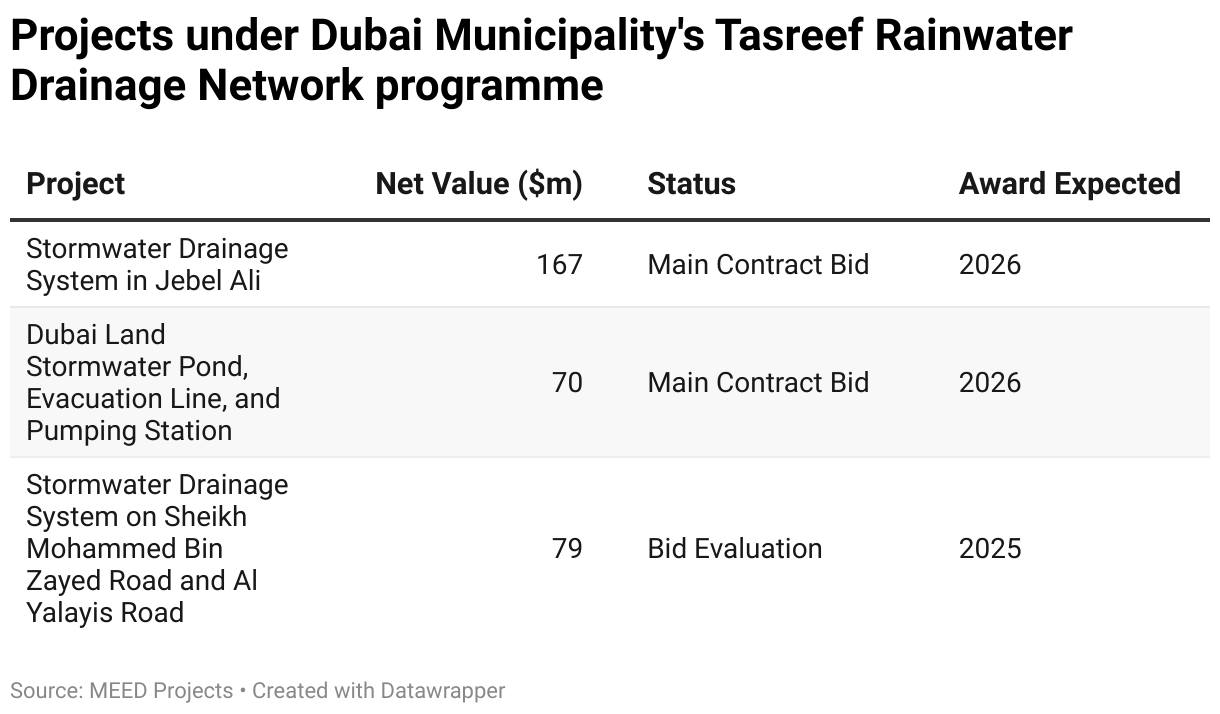 Projects under Dubai Municipality's Tasreef Rainwater Drainage Network programme