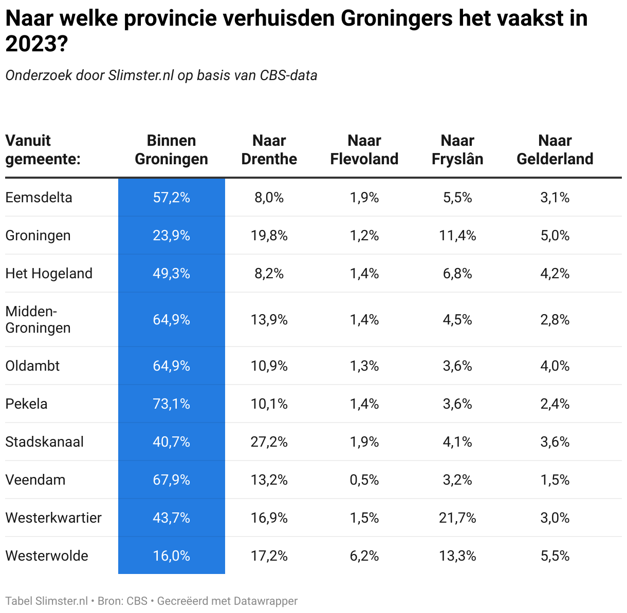 Naar welke provincie verhuisden Groningers het vaakst in 2023?