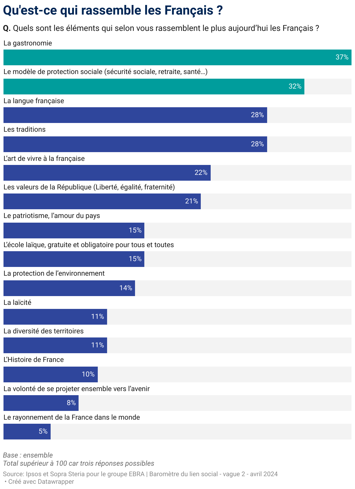 Q. Quels sont les éléments qui selon vous rassemblent le plus aujourd’hui les Français ?
