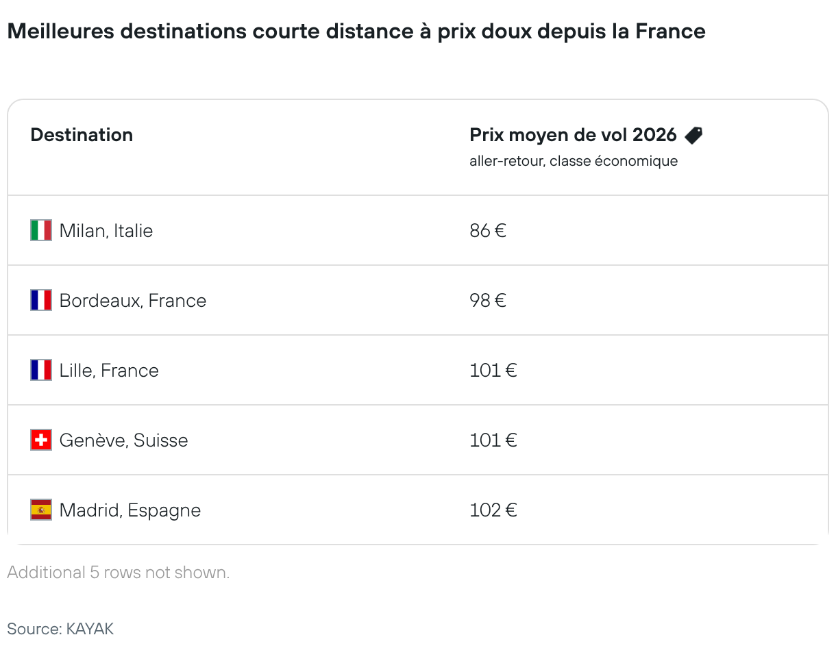 Meilleures destinations courte distance à prix doux depuis la France