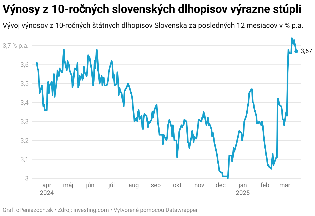 Vývoj výnosov z 10-ročných štátnych dlhopisov Slovenska za posledných 12 mesiacov v % p.a.
