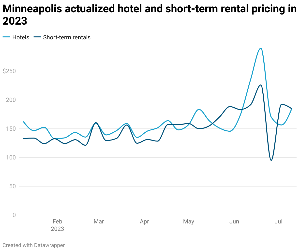Minneapolis actualized hotel and short-term rental pricing in 2023