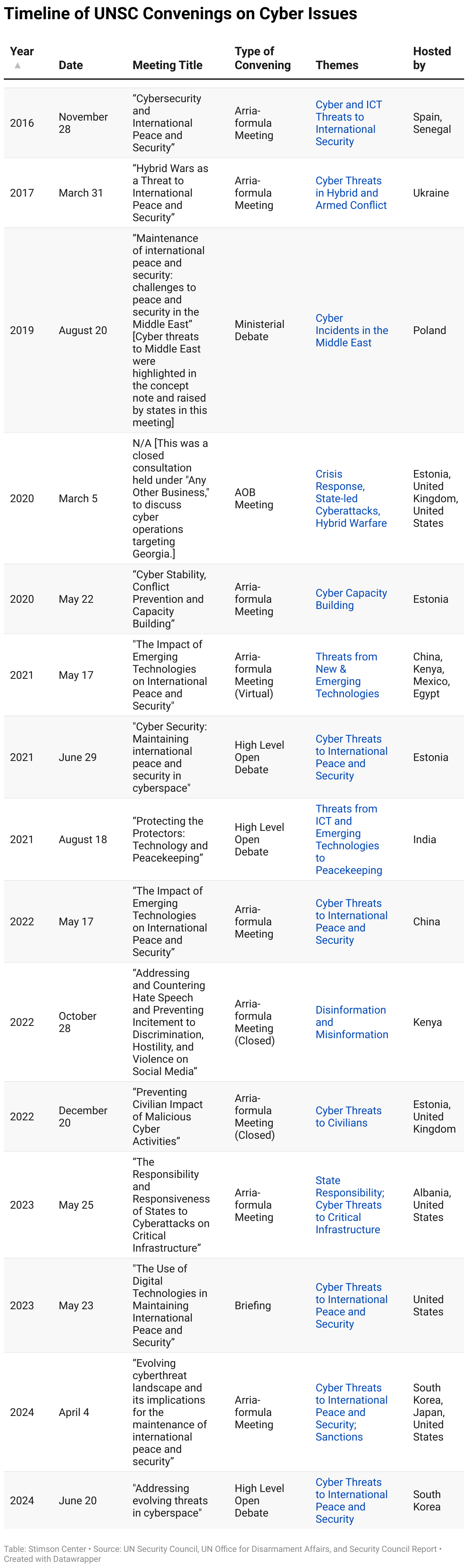 Timeline of UNSC Convenings on Cyber Issues