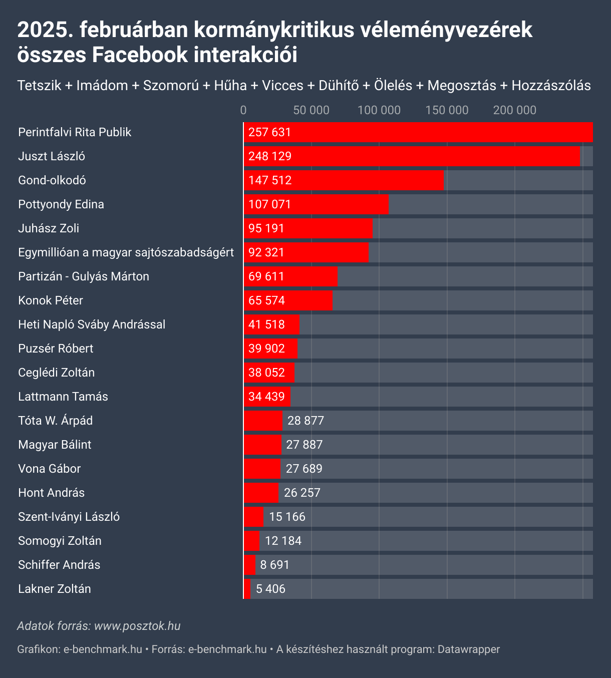2025. februárban kormánykritikus véleményvezérek összes Facebook interakciói