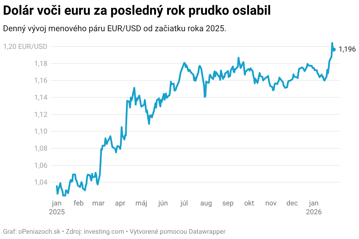 Denný vývoj menového páru EUR/USD od začiatku roka 2025.