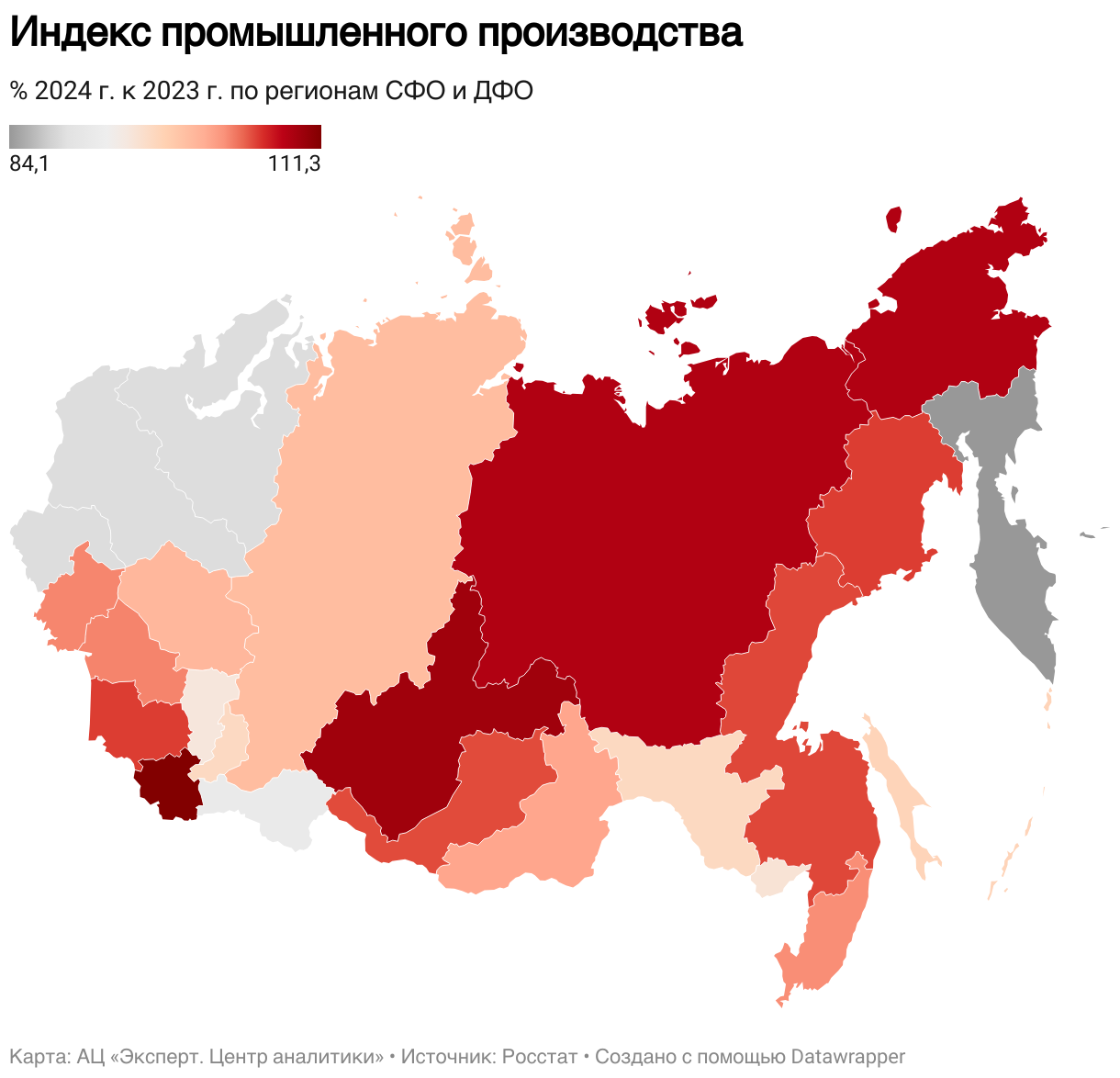% 2024 г. к 2023 г. по регионам СФО и ДФО