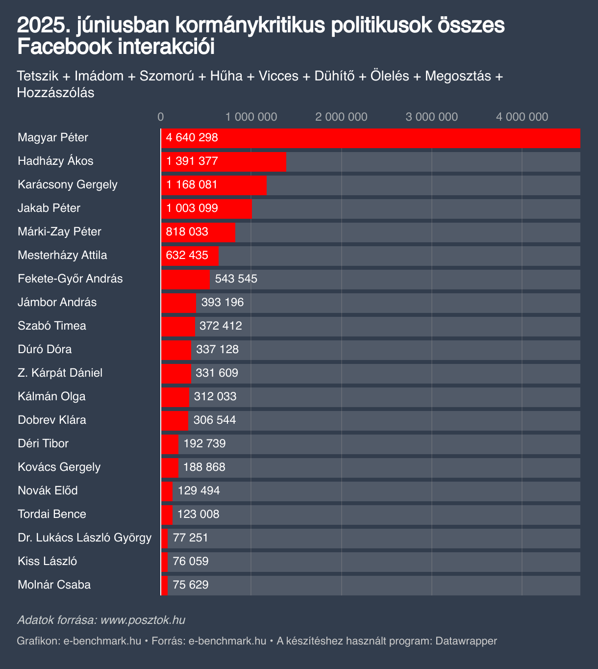 2025. júniusban kormánykritikus politikusok összes Facebook interakciói