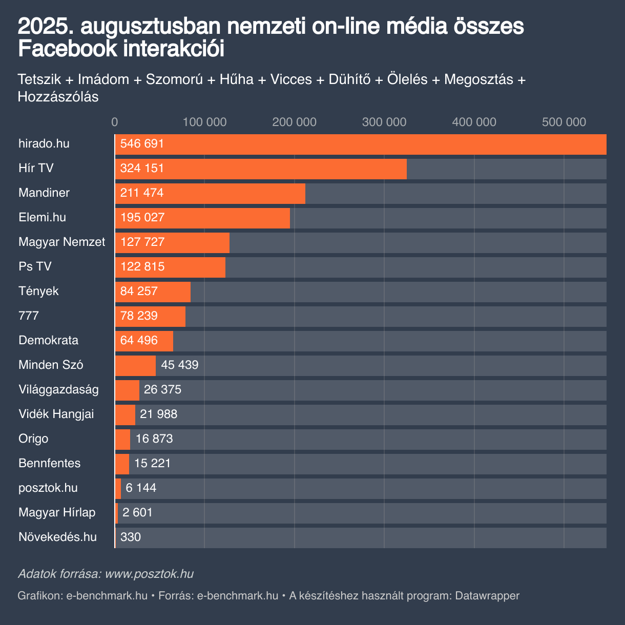2025. augusztusban nemzeti on-line média összes Facebook interakciói